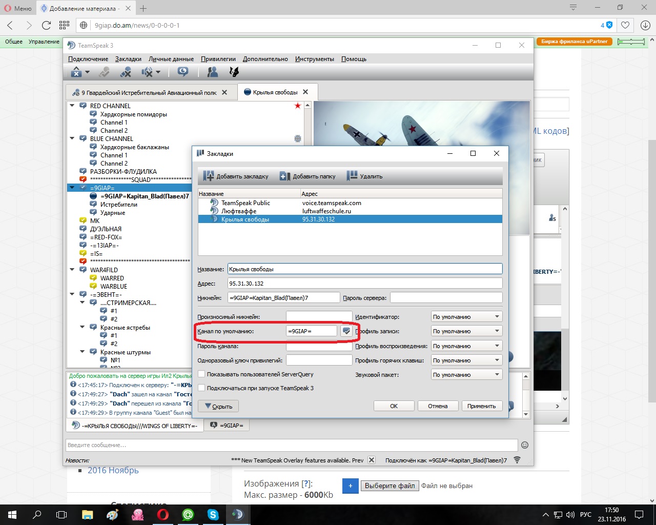 Для полка сделана отдельная комната в ТС сервера "Крылья Свободы".