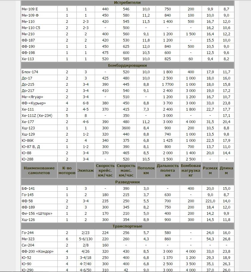 | Информация для личного состава и курсантов Ленинская комната Класс тактико-технической информации Основные тактико-технические данные самолетов Германии |