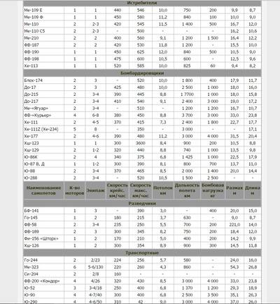 | Основные тактико-технические данные самолетов Германии | |||||||||