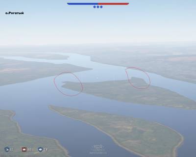 Теперь,чтобы добраться до задуманой точки,нам нужно пересечь Волгу.При перелёте мы можем увидеть очень интересный и запоминающийся ориентир: остров "Рогатый" (полковое жаргонное название).